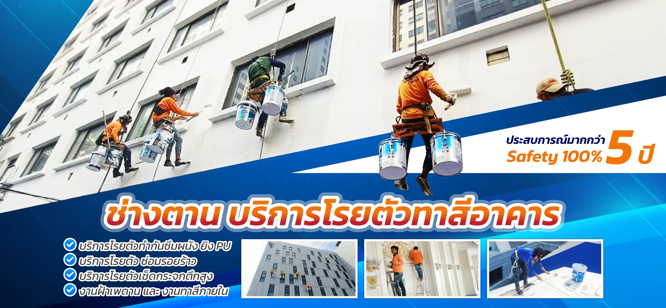 บริการงานโรยตัวทาสีตึกสูง ทำกันซึม ซ่อมรอยแตกร้าวอาคาร อุดรอยแตกร้าวดาดฟ้า ยิง PU เช็ดกระจกตามตึกสูง